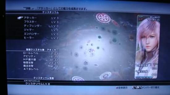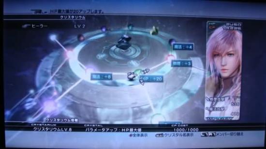本作的水晶盘系统有些类似于FF10的晶球盘,也是依靠消耗战斗结束后获得的水晶点数(Crystal Point,简称CP)来在盘上进行移动获得属性的成长。