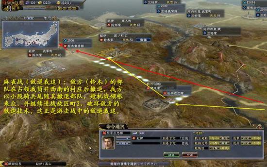 以“敌退我追”为例(群雄织田):我方刚刚占领筒井,铃木军也到达我方边境,见攻城无望,便偷袭了我筒井西南的村庄后撤退,我方派1000骑兵尾追而上,趁敌撤退之机(AI一旦撤退,就会一直退回城中,才会再度出兵),占领敌盟友根来众,并且还进一步侵占敌匠町,破坏敌方的铁炮技术。