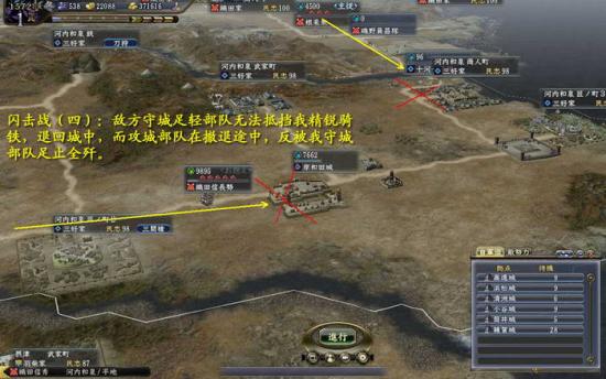 岸和田城守军迎击,被我骑铁击溃,敌攻城部队欲撤退,却被我方足止,守城部队趁机追歼敌军。