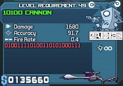 外星加农Cannon,我的第一把天外武器,当在第一关大鸟旁边那座哨塔红箱里刷到的时候,我不禁虎躯一震:超高的攻击、无限的弹药,无一不深深散发着它的王霸之气(看网文的各位大大请原谅我 )。