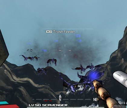 不过顺带说句,这枪秒人时候貌似带有一定的范围效果,下图是后来通关后到处逛,打Trash Feeder(永远的悲剧鸟,永远的LV1)的图,一枪死一片
