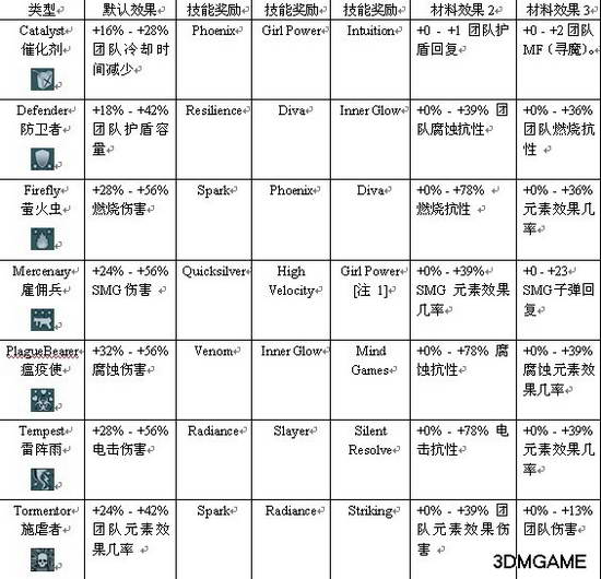 注1:(注意:Defender doesn't seem to stack with a high capacity shield and 5/5 in the controller skill tree)(这句话不太清楚意思,我没用过Siren。我理解是如果girl power这个技能加满了且盾的容量很大,Defender上加盾容量的词缀会失效。)