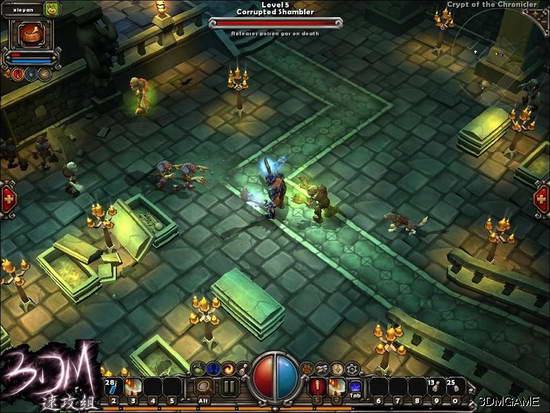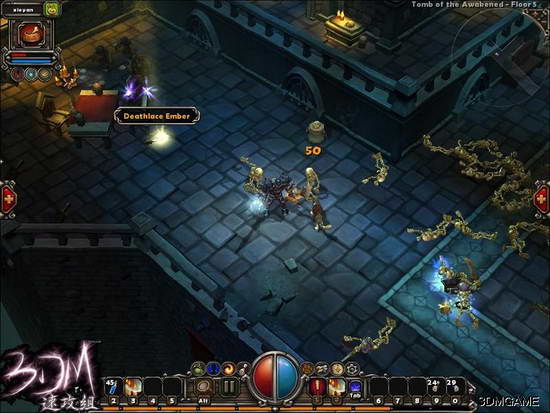 此刻如果等级过低的话,进入矿井5层会很危险。所以我们首先去Hatch大叔给我的任务,顺便提升一下等级。Hatch开启的时空门中的主要怪物时僵尸,这里没什么难度,唯一要注意的是僵尸数量很多,要小心一种身体冒着绿光的僵尸。这种僵尸死掉后会放出大范围的毒气导致玩家持续掉血。在地图尽头处捡起宝藏,进入尽头的门,与Hatch对话完成任务。Hatch会给你后续任务,依旧是进入时空门寻找宝藏。这次进入后地图有两层,没什么难度。完成Hatch的所有任务后,进入传送小站,接下来我们要进入矿井第五层。5层怪物的密集度达到了质的提升,步步为营的推进时关键。同时Trill让玩家杀死的怪物也在这一层,分别是如同巨型憎恶的怪物和带着王冠的白色幽灵,各有两只,全部杀死后完成任务。在5层快到尽头处会找到名为:(Deathlace Ember)的任务物品,捡起后完成老头的任务。
