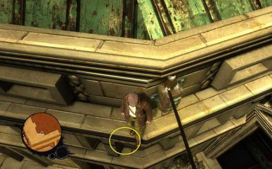 白点位置 这个建筑先从旁边的滑锁到达 这步很简单