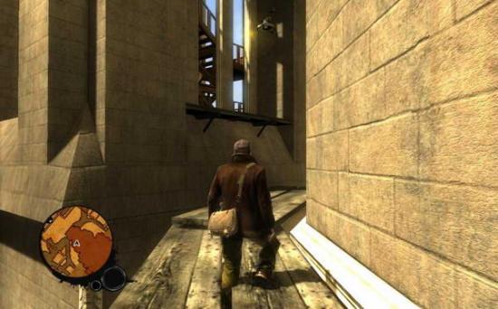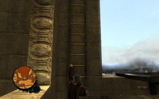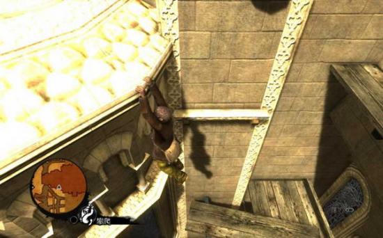 上房顶后会看见木板 顺着木版看到对面梢高的地方也有木板的地方 助跑跳到高一点的木板上