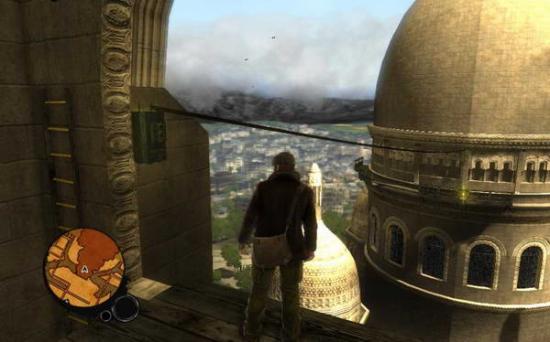 往左看会发现滑锁绳 顺着绳子滑到对面木板