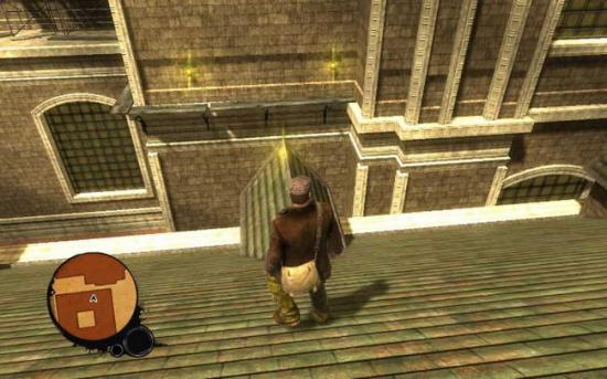 上来右面会有个小木架 然后如图先从左面爬 虽然右面有梯子 但是没法向上爬