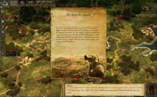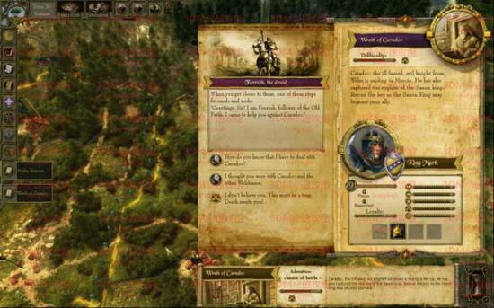 第二章开始有选择分支,一个是去挑战西边的巫师军团,一个是挑战东边的野蛮人军团;难度不小,都是10级的部队。打败他们即可完成任务。而且在后期这2个英雄之一会加入你的阵营。千万不能选择和平解决,否则肯定失败