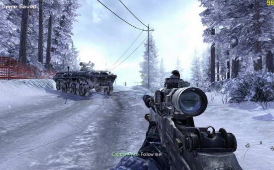 Price被救出以后,决心来点火上浇油的事情,那就是窃取俄军核潜艇里面的核弹!虽然大boss对此并不满意,但是price坚持要立刻结束战斗。Roach跟随price潜入,前方是敌人的巡逻队,听从price的命令把他们全部狙杀(图1),然后经过一座大桥,会突然出现敌人的装甲车(图2),赶快和price躲进树林,然后小心不要惊动巡逻的敌人,,最后就会到达敌人基地边缘,这时候price让你控制UAV消灭敌人(图3),但是UAV被SAM导弹击落了,无奈price只好亲自出手去除掉SAM,并且再呼叫UAV,这时候SAM恰好被另一边赶来的Ghost小队炸毁,回合以后继续前进,不要在此地耽搁,去前面的大基地边上(图4),使用UAV炸毁敌人的车辆,然后跟着Price杀下去,路上没有方向提示所以跟紧大胡子,并且不断利用UAV清除敌人的车辆,最后来到潜艇周围,你需要登上楼房掩护Price(图5),还是要利用UAV炸敌人(图6),阻止他们接近潜艇,不久之后潜艇发射了核导弹(图7),任凭Ghost呼叫price都没有应答。。。。。