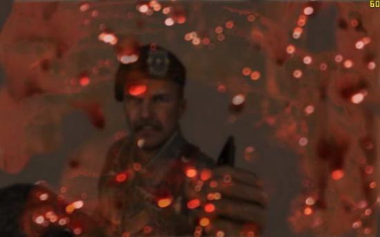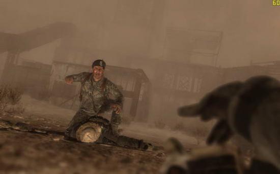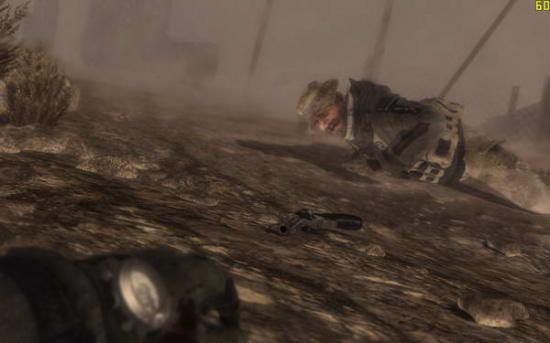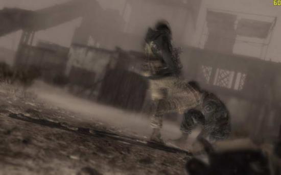 在一阵咳嗽声中,soap苏醒过了,手持匕首蹒跚前行,路上会遇见两个美国士兵(图6),不过念他们都是忠于上级才犯下的错误,还是饶过他们吧。。。之后闪过的身影就是Shepherd将军,跟着他,发现他在一辆汽车后面喘气(图7),上去一刀,谁知他伸手敏捷,一把放到了soap(可是特种兵啊!),随后抓起匕首插入了soap胸膛(图8)。。。