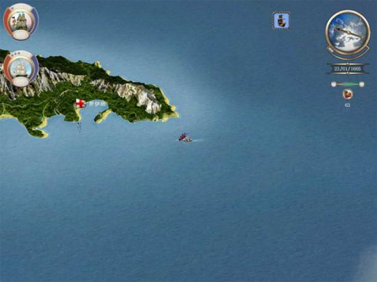 接下来就是要在全加勒比海域进行地毯式搜索,只要遇到紫色的船,那么就是我们的目标!船的位置是不确定的,找到完全看RP!这次比较幸运,我在罗伊港附近发现了目标!二话不说,直接开战。