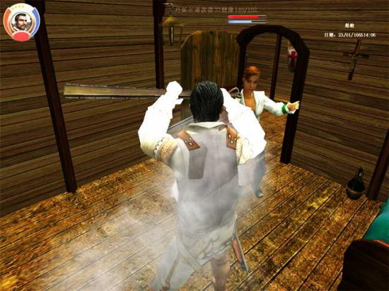 好不容易来到船长室,我们俩打的如此缠绵— —(说实在,这可能是游戏中,唯一 一次和女人打架的机会)