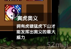 等待了好久,寅虎奥义终于问世了,多少有点失望,不过清怪很强劲,虎啸+猛虎下山+虎啸,奥义一出,满屏的小怪都被灭了。。。不过打boss不太好,而且发招频率太低(和子鼠没法比啊。。。) ,貌似30秒一次吧,满级寅虎奥义伤害还比较可观, 回血很多,和丑牛奥义差不多,可是第二个虎啸多次打不到,不过眩晕很爽,可以趁机虐爆boss,虽然不及子鼠,但还是可以的啦 ((((奥义可秒杀二郎神 已上图图))))