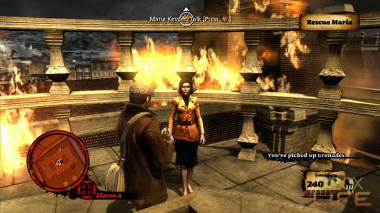 把比赛用的车子搞定之后,接下来只要等待路克把兵力给佈署好,就可以开始反抗行动。来到市区与Bryman交谈,对话中得知Kessler博士的女儿被纳粹给捉走了,为了不要造成更多的麻烦,史恩必须立即进入市政厅,把她给救出来。