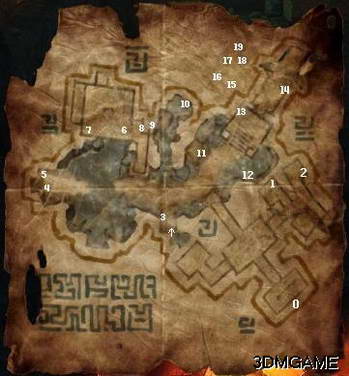 1-困难箱子(地图) 6-蜥蜴人守卫(牢房钥匙) 11-困难箱子 16-困难橱柜