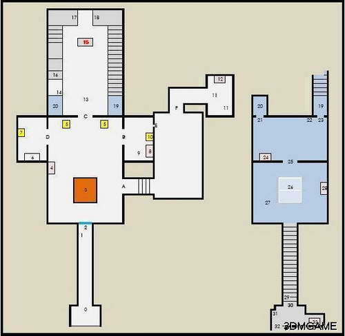 1-治疗药水 10-小祭坛 19-门前阶台 28-困难箱子 D-右侧房间