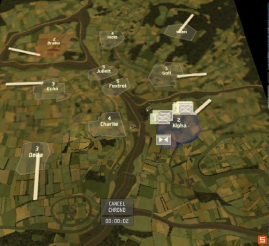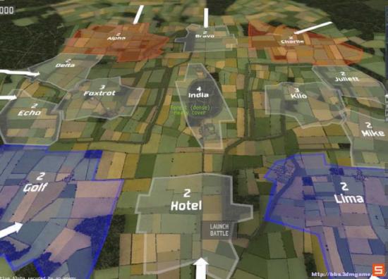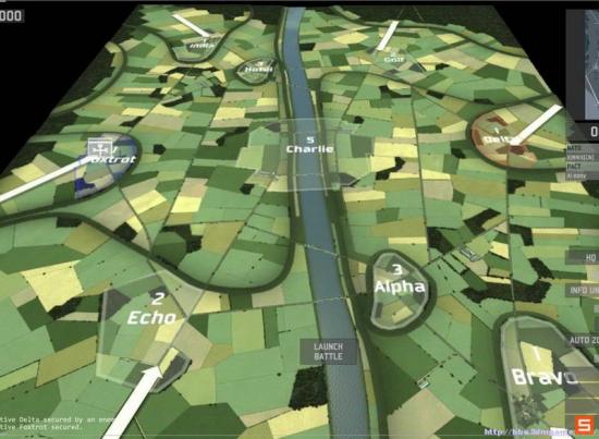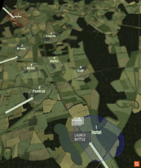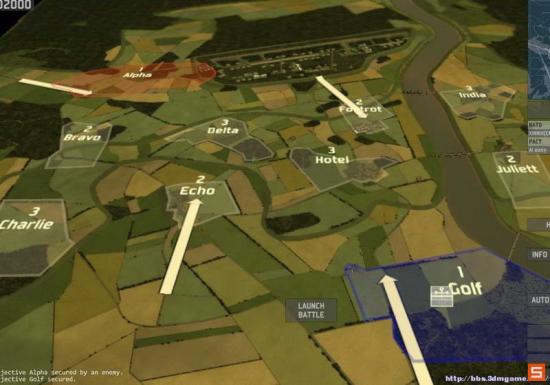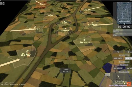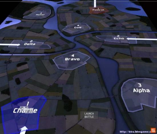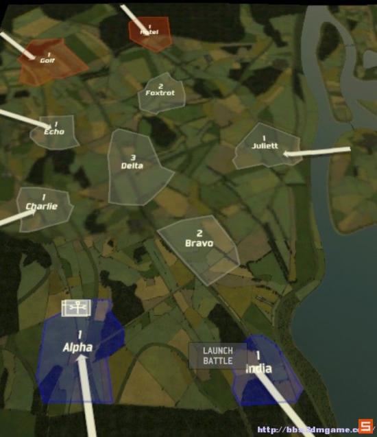 此图是网上大批老外骂的图,原因就是此图树林较多,桥梁有限,不利于装甲部队的进攻,先进攻的一方往往是失败的一方。不过不用惧怕,此图完全可以变兵力投送为火力投送,203mm榴弹炮效果最好。为了胜利,向敌人开炮!炮击敌占区森林,基本每个波次都能有收获。足够lucky的话,指挥车的200+分更是人见人爱。C区玩家来说,开局要派步兵占领正上方的城市,该点阻遏敌人进攻效果非常好。B区是开局必须占领的,E区视情况占领,占领E区就已经成功了一半,扫清前方的城市,则通往敌占区的大门就打开了,这时候投入装甲合成部队直冲F区吧,消灭了F区敌人对H和G区的占领就变得毫无意义了。开局向H区和D区树林派遣少量步兵是很有必要的,G区是炮击最好的目标,如果敌人胆敢占领D区,在侦察直升机的监视下,树林是唯一的可隐藏地点,203榴弹炮尽情的轰击吧。