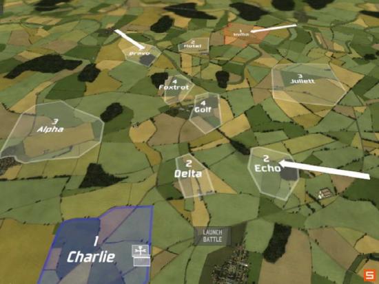 对于A区一方的玩家,有另一种开局方法,放弃A区,指挥车占领G区,指挥直升机占领D区。步兵卡住F区的和C区的树林以及G区上方树林。装甲部队从D区出发,向E区进攻,D和E之间地势平坦,树林稀少,非常利于装甲部队的发挥,如果敌人开局未占领E区,则向B区进攻。敌人失去出兵点便意味着失败,尽管敌人还可能占领H区做出兵点,但是H区植被茂密非常不利于大部队行动,仅用步兵很难对G区构成威胁,扫清其他区后,便可对H区形成合围,为了减少损失,可以用榴弹炮炮击来赢得胜利。