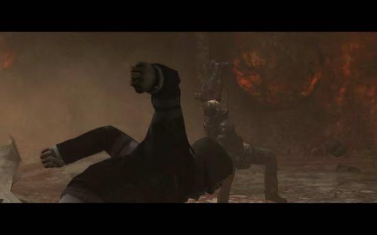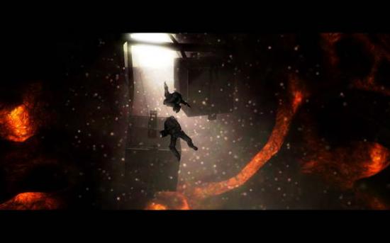 (Cross像上射出绳索往上升 Alex向上跳抓到Cross 两个一起到屋顶)