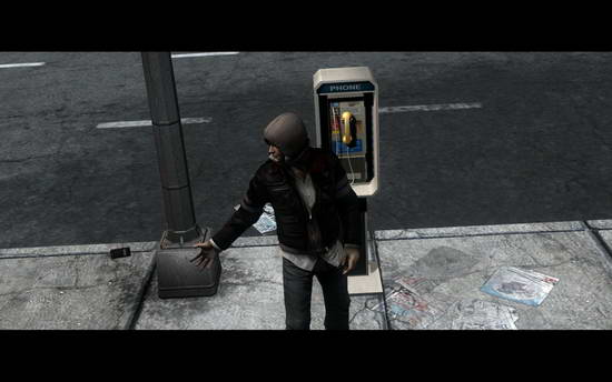(Alex接起黏在公用电话底下的手机)