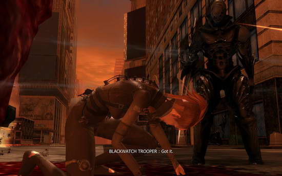 Blackwatch 装甲兵: 那是他妈的甚麽? 他不是我们这边的! (感觉像是对Alex说的)