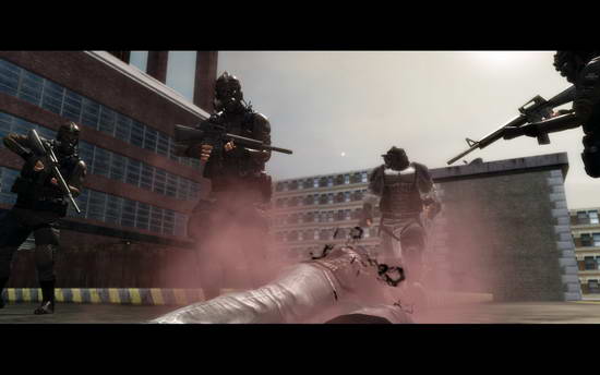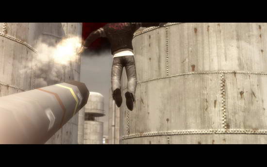 (本想逃到油槽上的Alex没料到士兵来了发火箭筒 被轰回地面)