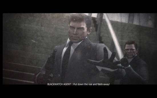 Blackwatch 代表: 放下药水瓶并回来! (拿枪指著Alex)