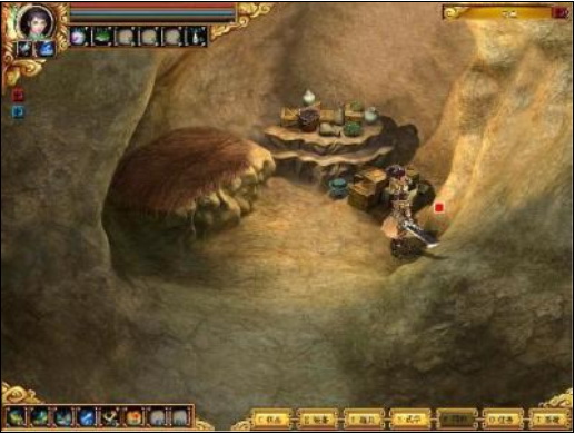 接着场景转换来到了地宫藏宝室大厅,首先需要将石屋子的石开关点击打开,位置见图1: