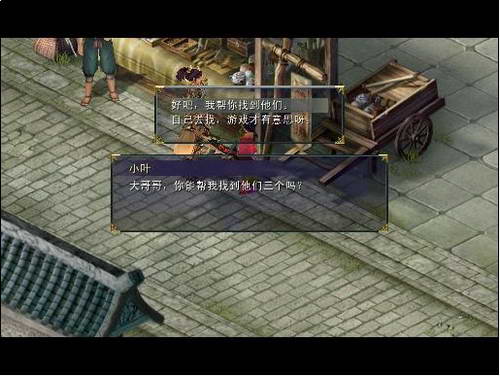 在四海镇上的杂货郎边上可以找到小女孩小叶,从她这里触发支线任务捉迷藏,见图1: