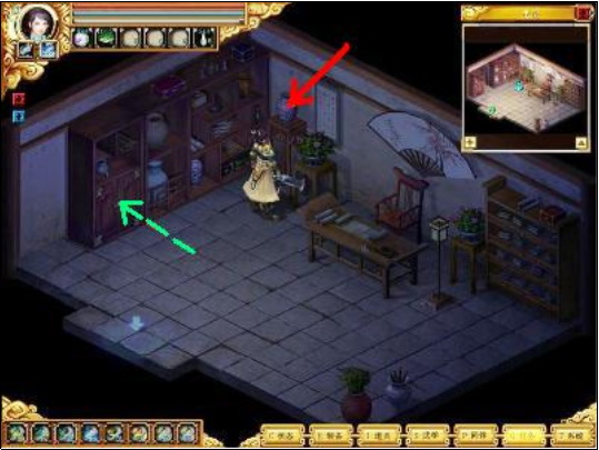 点击花瓶(红色箭头)即可,然后可以进入江宅密室(绿色箭头),见下图: