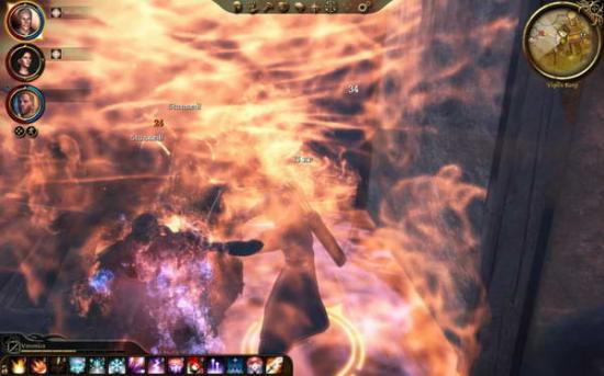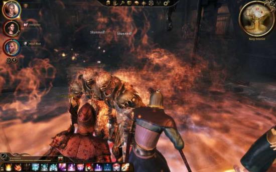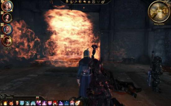 大厅里面的敌人实力都比较强;而且后面还有魔法师进行远程攻击;这里建议在大厅入口处放旋风火魔法,然后吸引肉搏的敌军到火阵中消耗;你则放喷