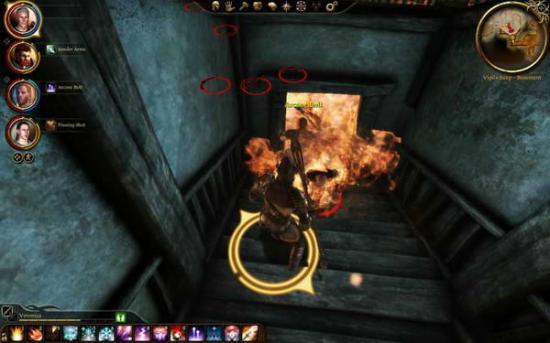 在第二层的西边小屋子的女神像;点击它可以发现在一边的暗门,有很多好东西。注意提示ANDRASTE WAS BATHED IN FIRE BEFORE