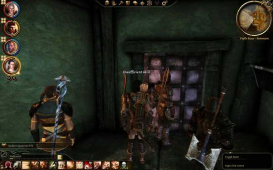 如果你开锁技能已经升到满级;就可以先打开这个门,先清理这里面的怪物。这个场景一看就是有埋伏;所以可以先派矮人先下去当诱饵把这些家伙都引出来