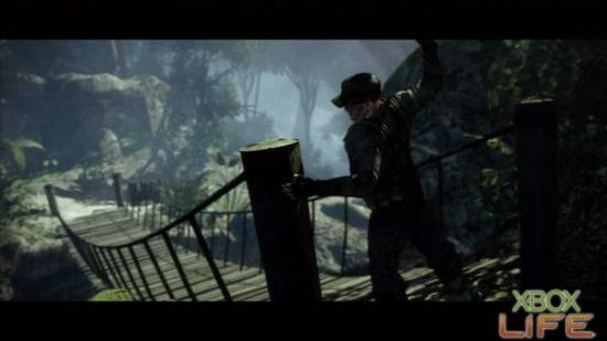 接著继续往前走,穿过漂亮的丛林,会发现了一座吊桥,靠近吊桥后会进入剧情。