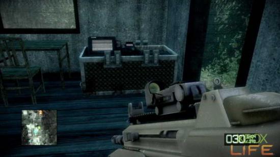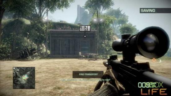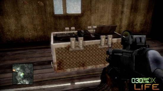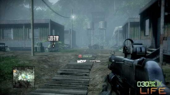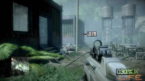 破坏完M-COM后 朝著任务点继续前进,会发现一旁有一个武器箱,请先换上你用得顺手的武器后,再朝前方的房子移动,接著就会自动进入剧情。