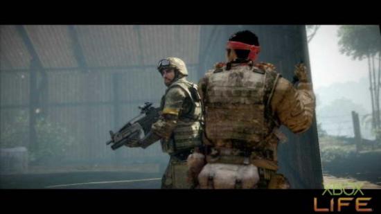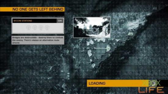 破坏完M-COM后 就能走出房子上车,一路骑到任务点后便会自动下车。解决掉桥上的敌人后会有一台装甲车出现,使用榴弹将装甲车轰掉后桥也会跟著断掉。走断桥右边的小路过桥 后会出现几名敌军,解决完这些敌军后又会出现一辆装甲车,用老方法将装甲车解决掉即可。