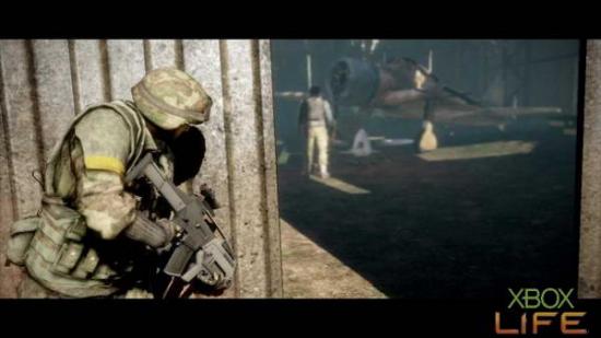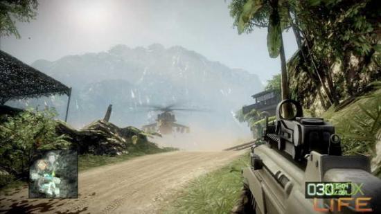 解决掉装甲车后朝任务点前进,处理掉几名躲在屋内与屋顶的敌人后,前方会出现一台坦克,躲起来等到坦克自动炸毁后就能继续前进,来到停机坪后一路小 心地解决几名敌军,在靠近任务点前时会出现一台武装直昇机,可以不用理它,躲在一旁的停机坪或坐在直昇机内等它飞走就能继续前进。