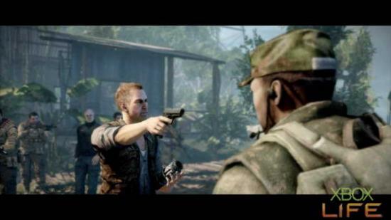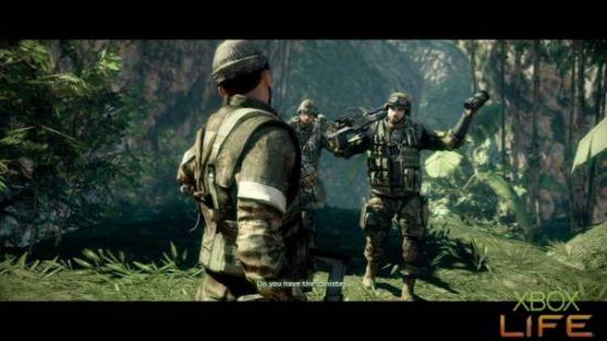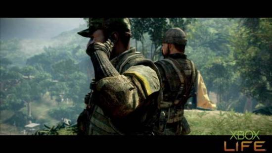 捡完枪枝并且破坏完M-COM后,就可以回到刚刚的叉路口继续往任务点前进。一路解决掉零星的敌人,并且注意躲在暗处与使用火箭筒的敌人 后,顺利的来到任务点便会进入剧情。
