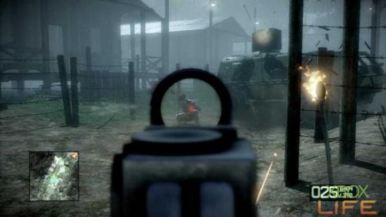 剧情过后建议先在一旁的武器箱中换上T88 S与一把步枪;因为等等前方会出现不少敌人,所以建议先在这裡换上可以 连发又可以狙击的T88 S会比较好一点。换完枪枝继续前进并且过桥,请在这裡找一个比较安全又能看到下方整座哨站的位置躲好,便能开始进行杀敌的动作。这裡要小 心的就是哨塔上与哨站内的机枪兵跟火箭筒兵,顺利解决这些敌人后就能朝哨站内慢慢前进。