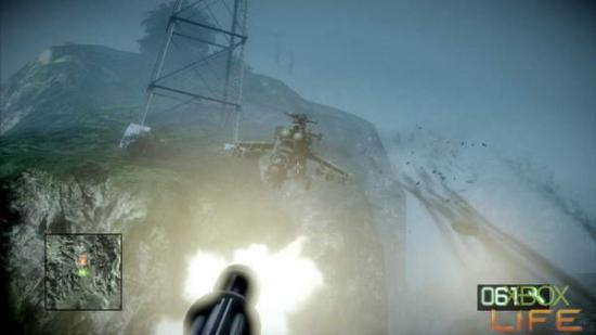 坐上任务点的直昇机会自动进入使用机枪的画面,在飞行的路上会有不少敌军车辆、人员甚至是武装直昇机对你攻击。请儘量儘早将这些威胁处理掉,避免自 己的直昇机受到过多的攻击而墬毁重来。
