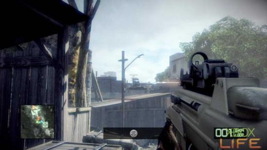 破坏完M- COM,就可以继续前进。先躲在一旁的木製小仓库中解决掉下方的两名敌人,接著再用榴弹将左边房子楼上的机枪轰掉,就能前进寻找新的掩体来 处理村庄中剩下的敌人。