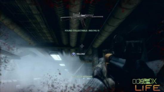 本关卡接续前一关末尾,上了飞机后你只有一把小刀,请快速跑到任务点前给敌军一刀,并且捡起他掉落的枪枝,在这裡可以捡到AKS-74U R。