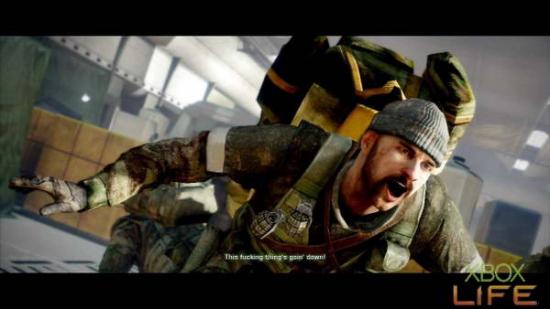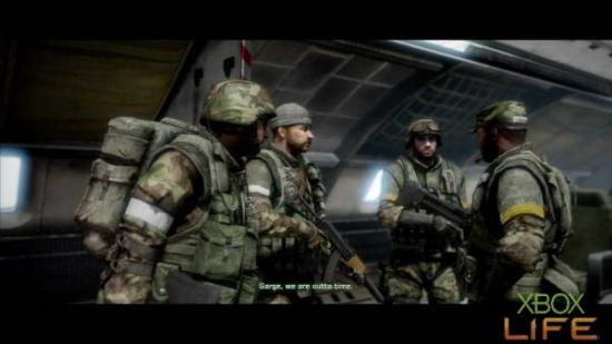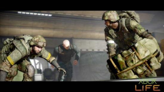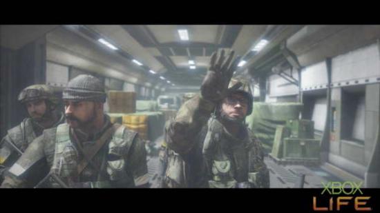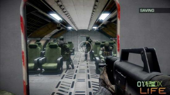 剧情过后哈格会丢给你一把USAS-12S,接著跟著小队前进来到楼上机舱前,等待中士踢完门后就会出现不少敌人。这裡并不像《决胜时刻4》的 最后一关有时间限制,所以大家大可躲在门旁慢慢将敌人清光再往下一区前进就好。