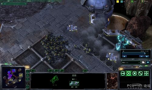 ↑这里是非常让笔者感到不解的一幕,当渡鸦被打掉,当虫族大军洋刀立马杀来的时候,人族竟然选择了建造渡鸦,且不说刚造出来的渡鸦没有能量,就连人族的大部队,也没有赶来堵口,只是来了几辆小跑车,意思一下,退一步讲,这个时候人族是四矿运作,就算和对方玩对推都是人族有优势,很让人费解的一幕。↑