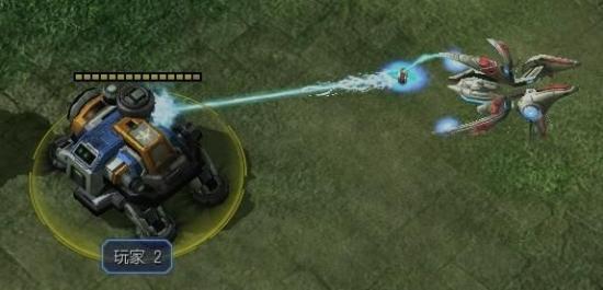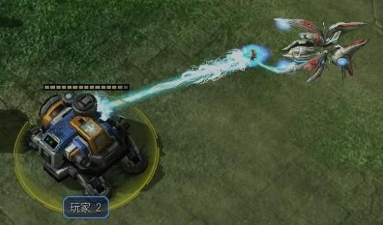 开始攻击,虚空舰张开放射器的机械臂,射出能量光束,此时能量光束很细(见下图1),