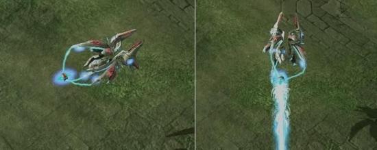 虚空战舰的出现使得星灵的空中部队愈发的强大。其招牌武器—棱镜光速光束不仅可以对地对空,更恐怖的是这种武器有伤害叠加机制,以至于很难有兵种能够长时间遭受棱镜光速的照射。