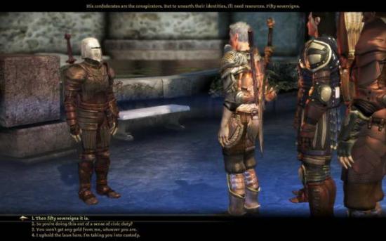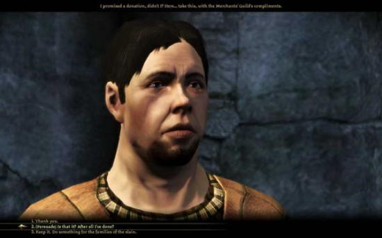 最后你可以不要他给你的奖励;也可以点击PERSUADE对话选项;就可以得到30金的奖励