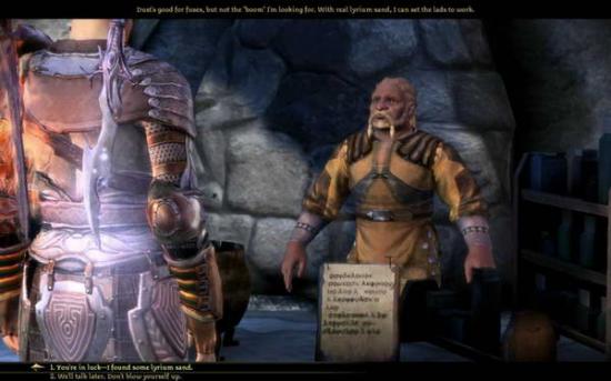 把你在刚才银矿里面找到的LYRIUM SAND交给这个矮子