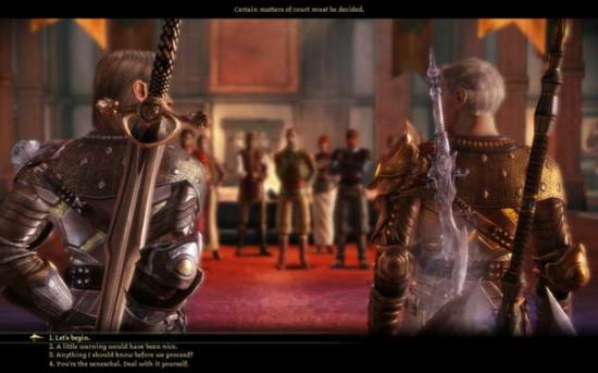 然后回到城堡;和首领说话;会接到一个任务;就是让你去参加法庭审判。因为这些都是关乎后面的结局的;所以选择要谨慎