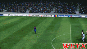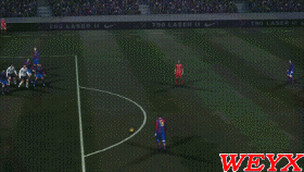 3、稍远一点的(25-30),这种球一般都是绕过人墙,蓄力时不+任何键, 球员起跑的时候+左右方向键,出球后+R2orR1、L1以增加下坠或者旋转。